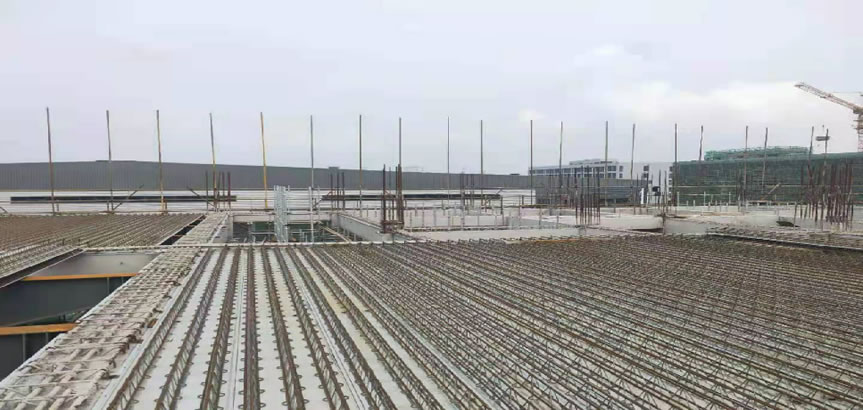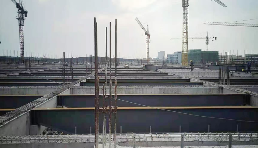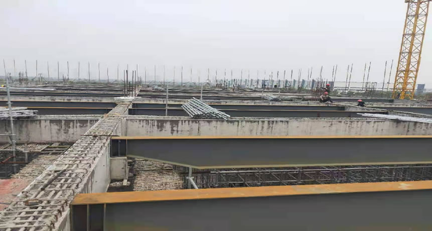 本工程是蕪湖恒馳鋼構有限公司與蘇寧的再次合作項目,此項目位于紹興市濱海新城江濱區,建筑總面積為43680㎡,共6個單體,跨度為12跨,此工程包含1#、2#、3#小件庫一層的鋼梁、樓承板、預埋件、螺栓以及其他鋼結構工程。