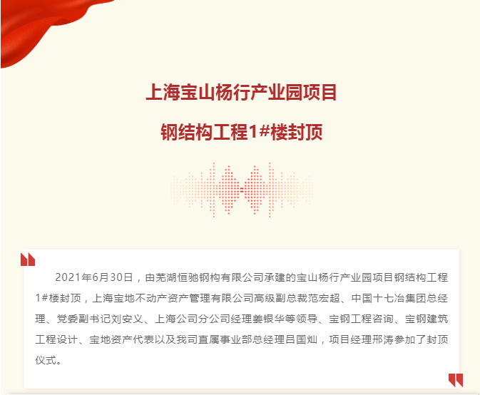上海寶山楊行產業園項目鋼結構工程1#樓封頂