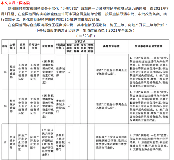 資質大變革!剛剛國務院發文:全國范圍內取消施工三級等資質!!